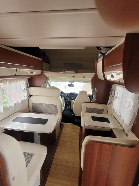 Accessori: Pannello solare 120W, forno, frigorifero grande doppia porta con congelatore, televisore, telecamera posteriore, condizionatore cellula Dometic 1700, generatore di corente Dometic Tec29 benzina, sospensioni ad aria, porta ingresso con zanzariera, portabici Fiamma, tendalino da 4 metri, luce esterna, ecc....omologato 5 posti viaggio. Sempre rimessato al coperto.